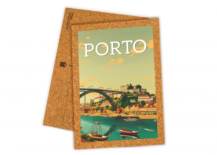Postal de Cortiça com ilustração da cidade do Porto