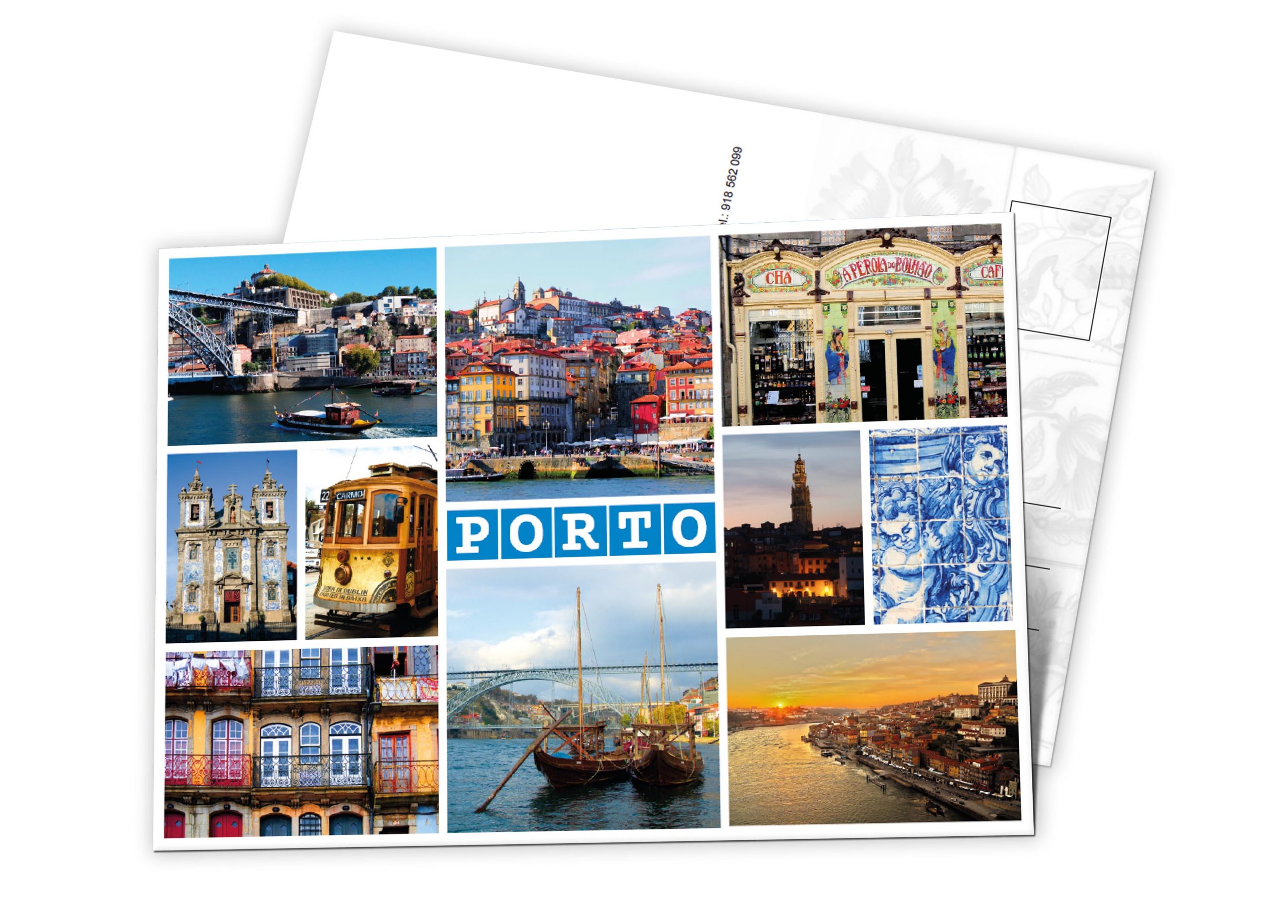 Postal com várias fotos da cidade do Porto.