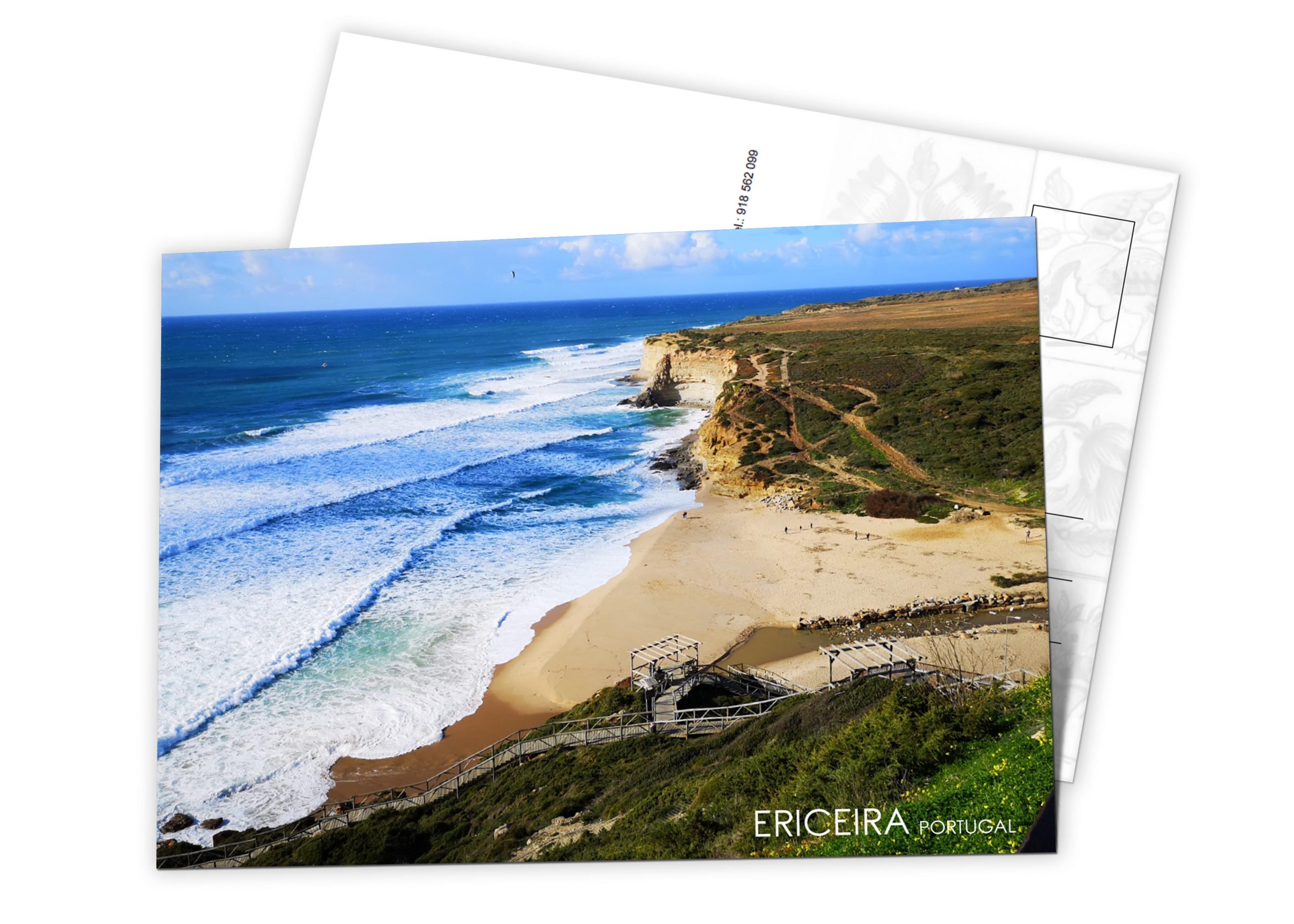 Postal com foto da Praia de Ribeira d’Ilhas, na Ericeira.