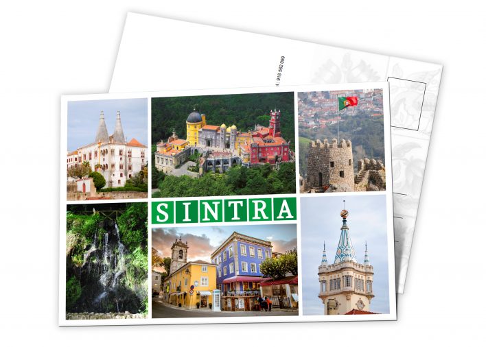 Postal com várias fotos de Sintra.