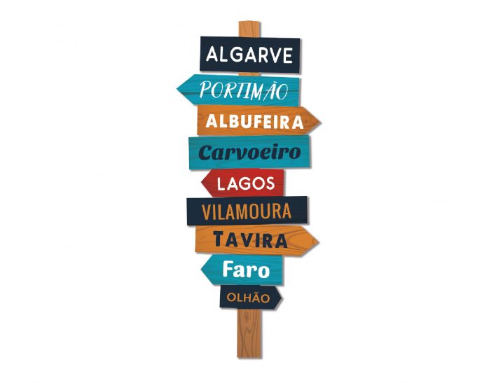 Magnético de madeira 2D com placa de direções do Algarve.