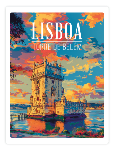 Magnético de madeira 2D com ilustração da Torre de Belém.
