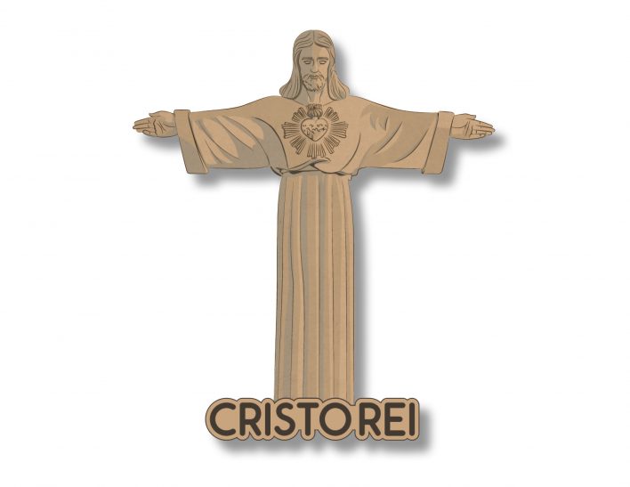 Magnético de madeira 2D com recorte em forma de Cristo Rei.
