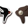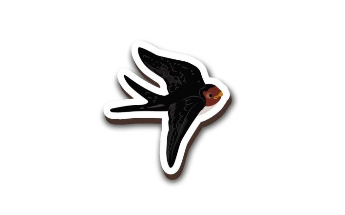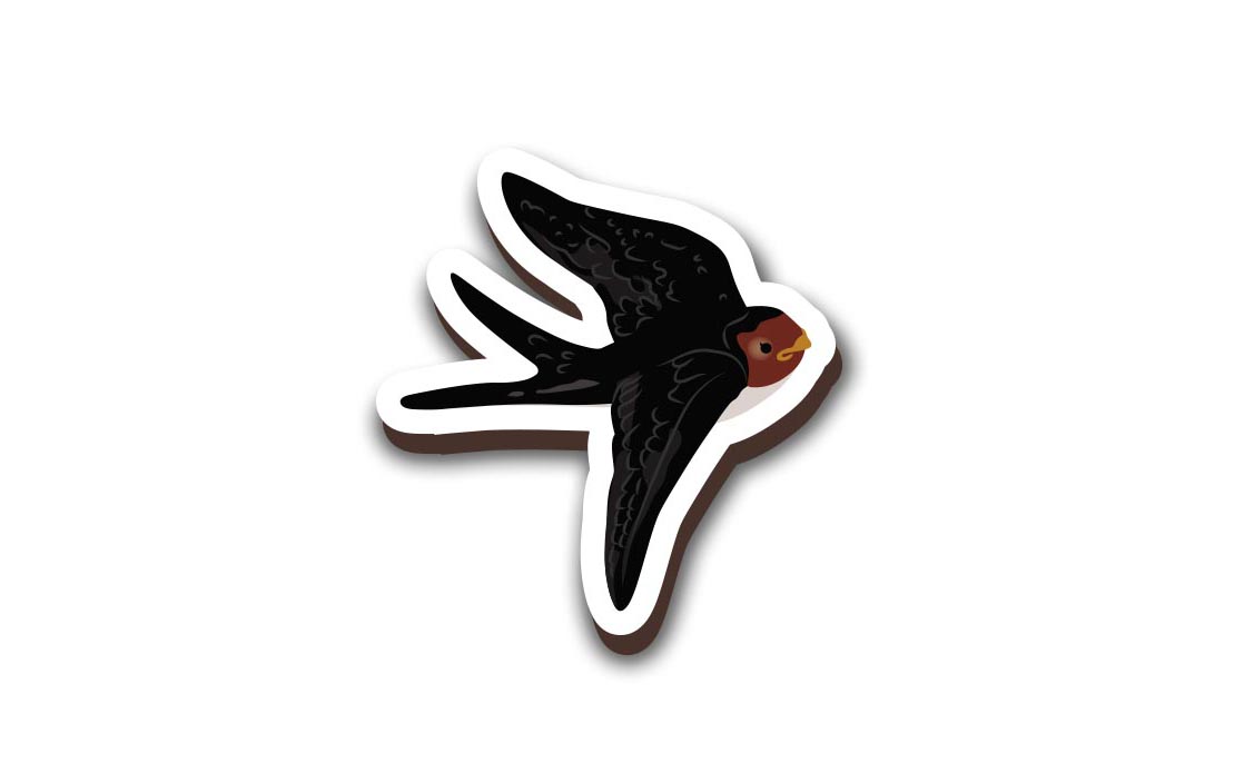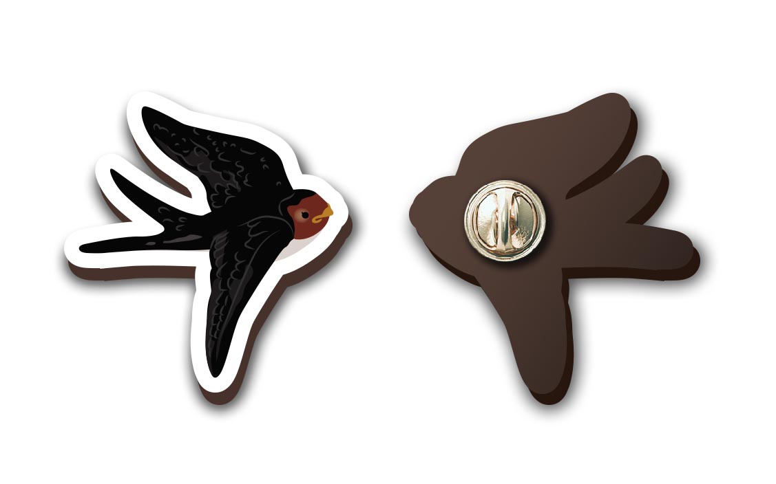 Pin cortado em MDF, com fecho, em forma de andorinha.