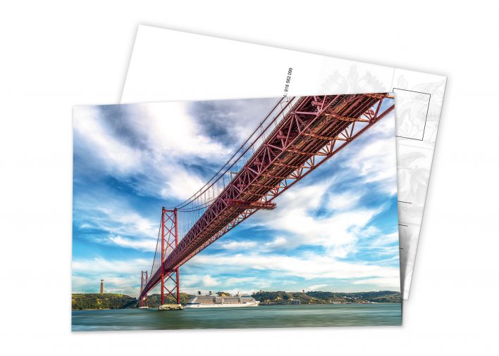 Portugal: Lisboa – A Ponte, o rio Tejo e o Cristo-Rei. Produto comercializado em múltiplos de 25 unidades para revenda e à unidade para o consumidor final.